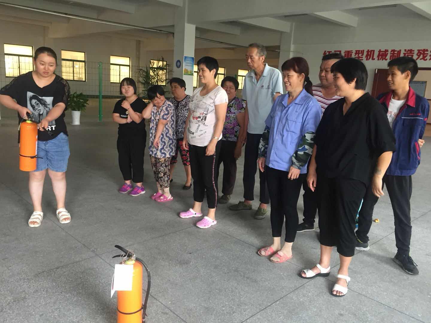 開展消防演練。在紅馬重型機械“殘疾人之家”文體中心,專管員周林生給大家講解消防安全知識,并向大家耐心示范了滅火器的操作方法。每個殘疾人認真的聆聽,深刻領會“消防安全責任重于泰山”的意義。大家還在老周的指導下,每人體驗了一下滅火器的操作。