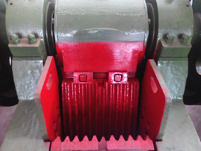 顎式破碎機的工作部分是兩塊顎板,一是固定顎板(定顎),垂直(或上端略外傾)固定在機體前壁上,另一是活動顎板(動顎),位置傾斜,與固定顎板形成上大下小的破碎腔(工作腔)。活動顎板對著固定顎板做周期性的往復運動,時而分開,時而靠近。分開時,物料進入破碎腔,成品從下部卸出;靠近時,使裝在兩塊顎板之間的物料受到擠壓,彎折和劈裂作用而破碎。