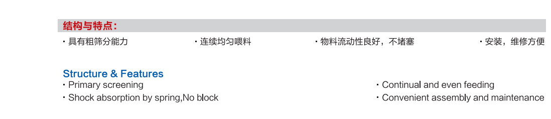 振動給料機(jī)又稱振動喂料機(jī)。振動給料機(jī)在生產(chǎn)流程中,可把塊狀、顆粒狀物料從貯料倉中均勻、定時、連續(xù)地給到受料裝置中去,在砂石生產(chǎn)線中可為破碎機(jī)械連續(xù)均勻地喂料,并對物料進(jìn)行粗篩分,廣泛用于冶金、煤礦、選礦、建材、化工、磨料等行業(yè)的破碎、篩分聯(lián)合設(shè)備中。